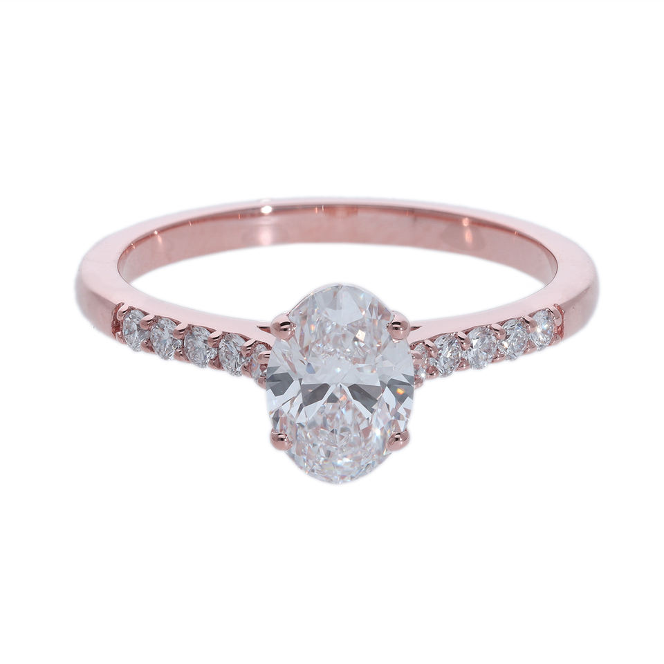 Bague de fiançailles ovale classique en or rose 14 carats avec diamant CVD cultivé en laboratoire, plaqué rhodium, cadeau de mariage pour femme, IGI