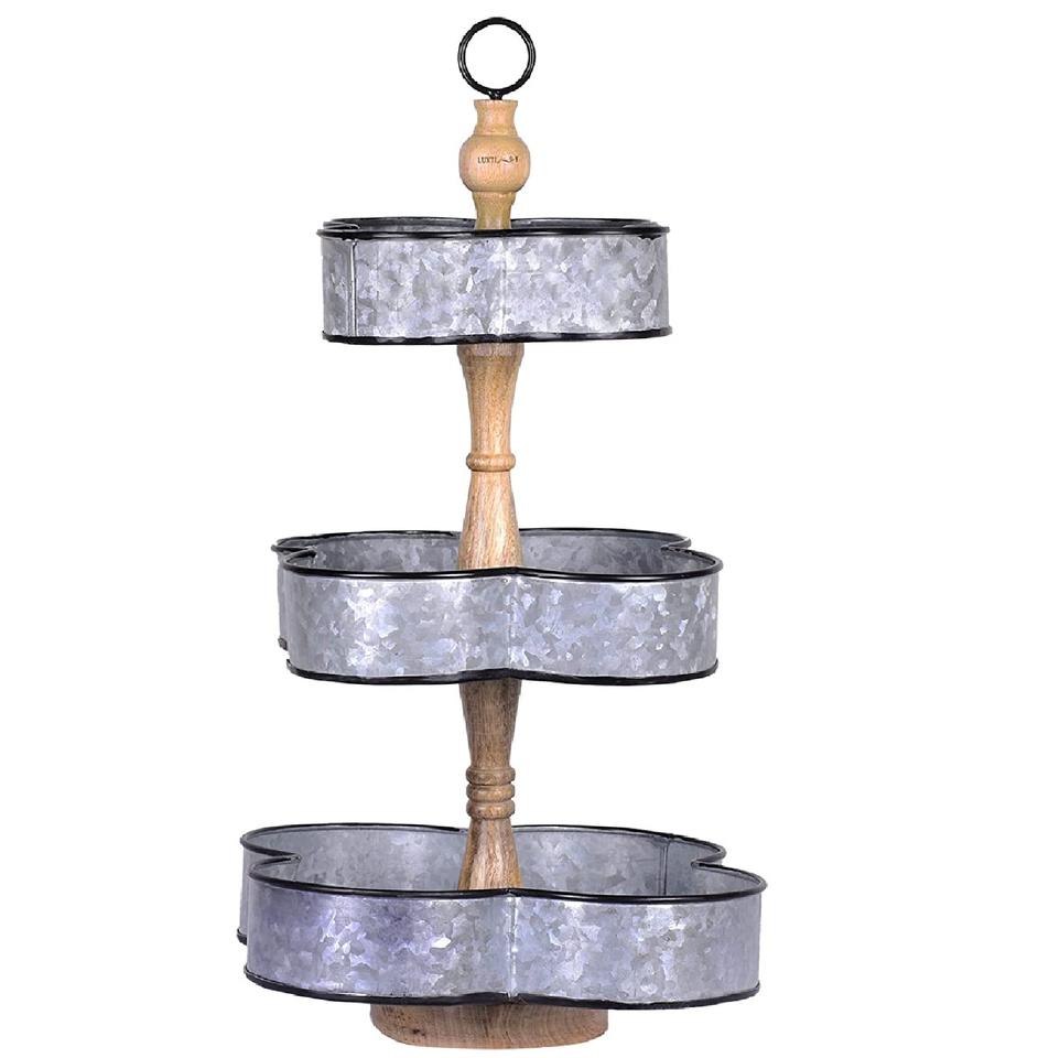 Support à gâteau galvanisé classique à 3 niveaux Design élégant Support en bois Parfait Événements de service Occasions spéciales Pièce de présentation élégante
