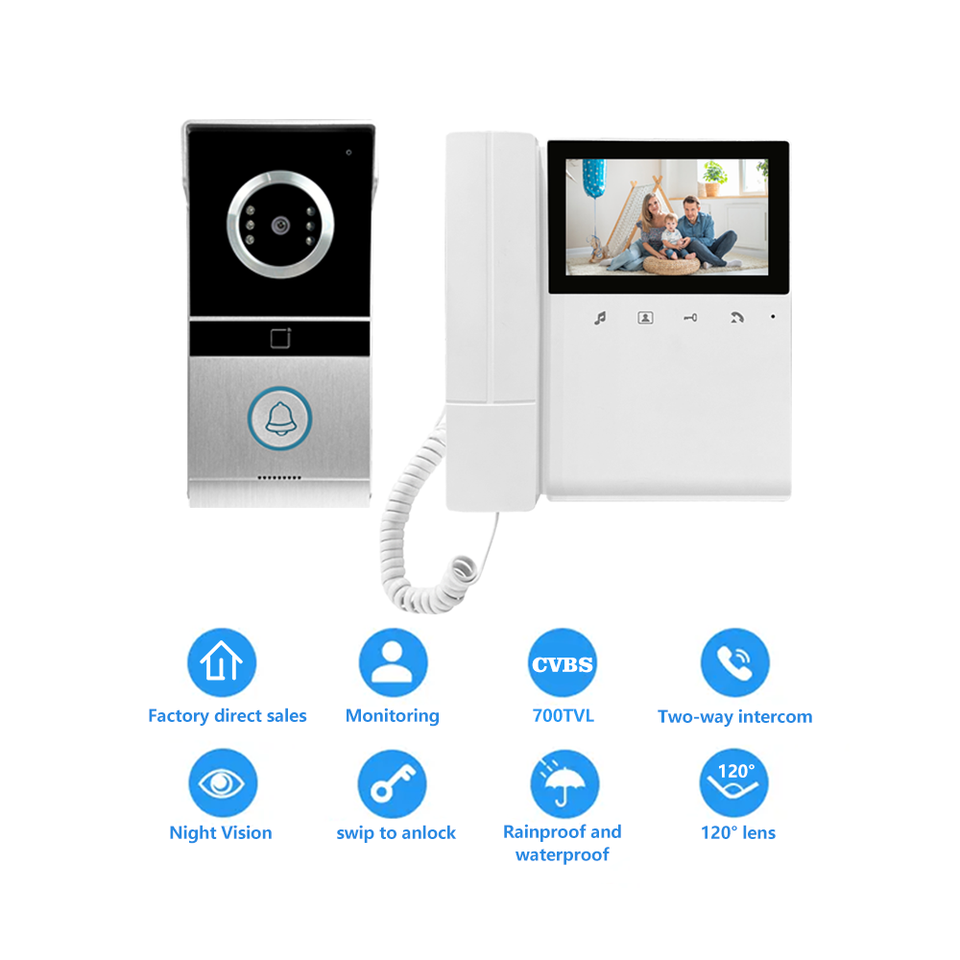 Classique 4.3 pouces LCD visiophone filaire visuel sonnette couleur étanche système de sécurité à domicile interphone vidéo interphone