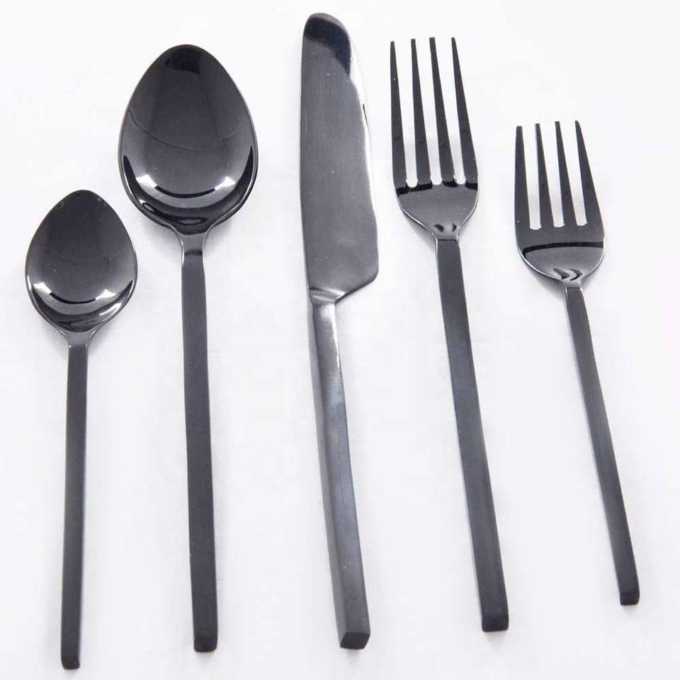 Ensemble de couverts en acier inoxydable classique 5 pièces Chic poignée noire Chic Restaurants moderne maison fourchette à manger finition argentée couverts