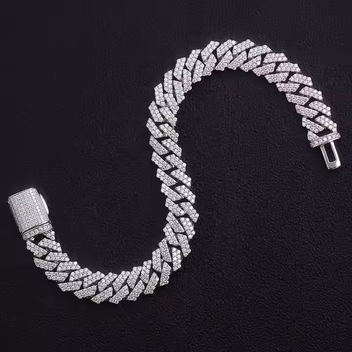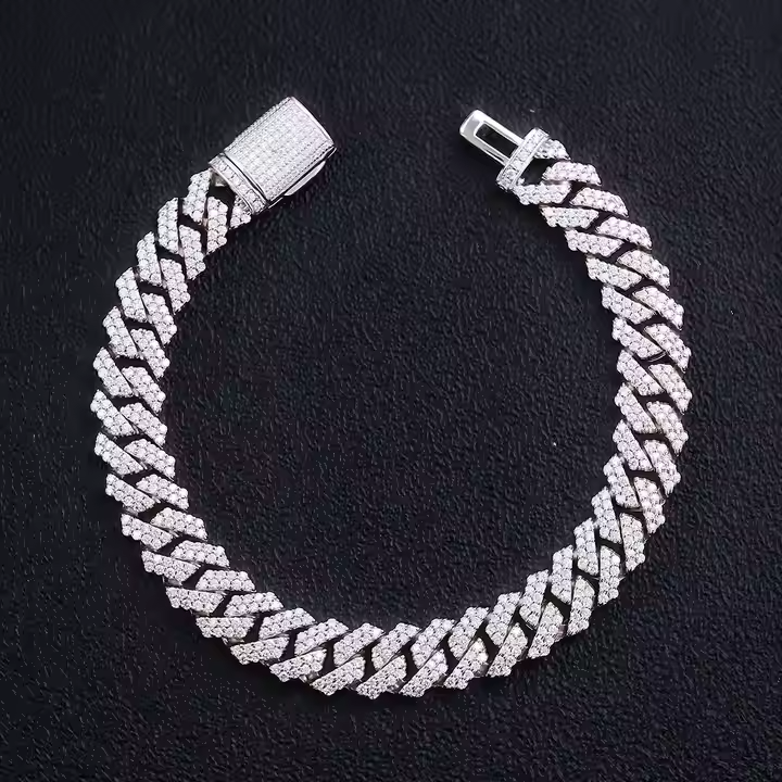 Classic 8 Inch Moissanite Diamond Hip Hop Bracelet in 925 Silver & 10K Gold Finish Premium with Box Clasp and Safety Lock