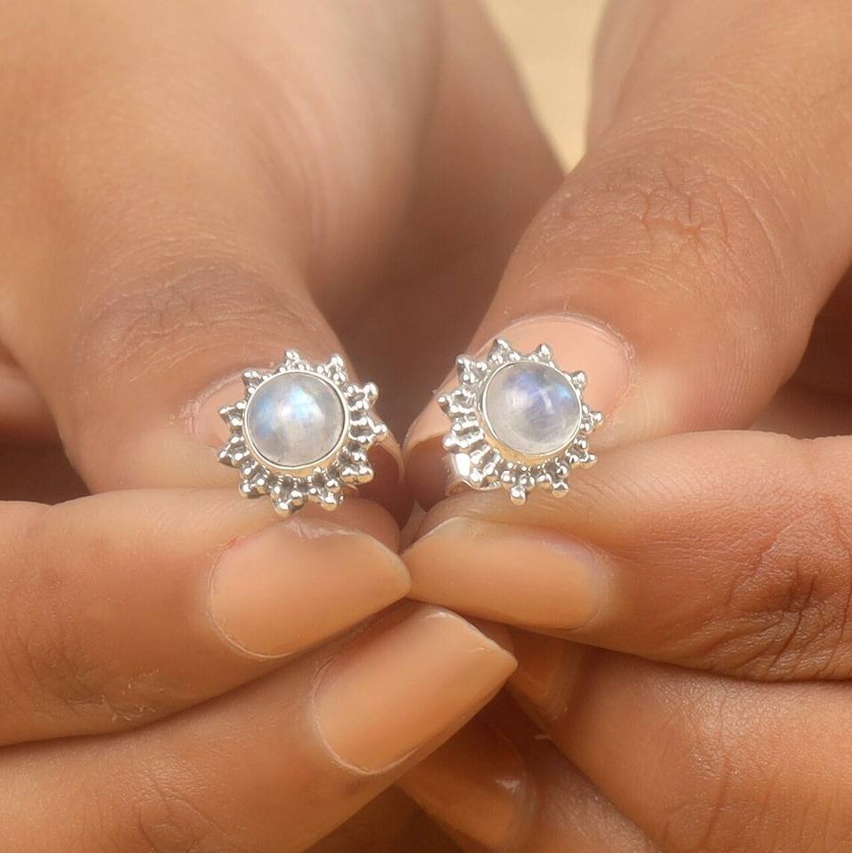 Product Name:Natural Rainbow Moonstone Gemstone Silver Earrings