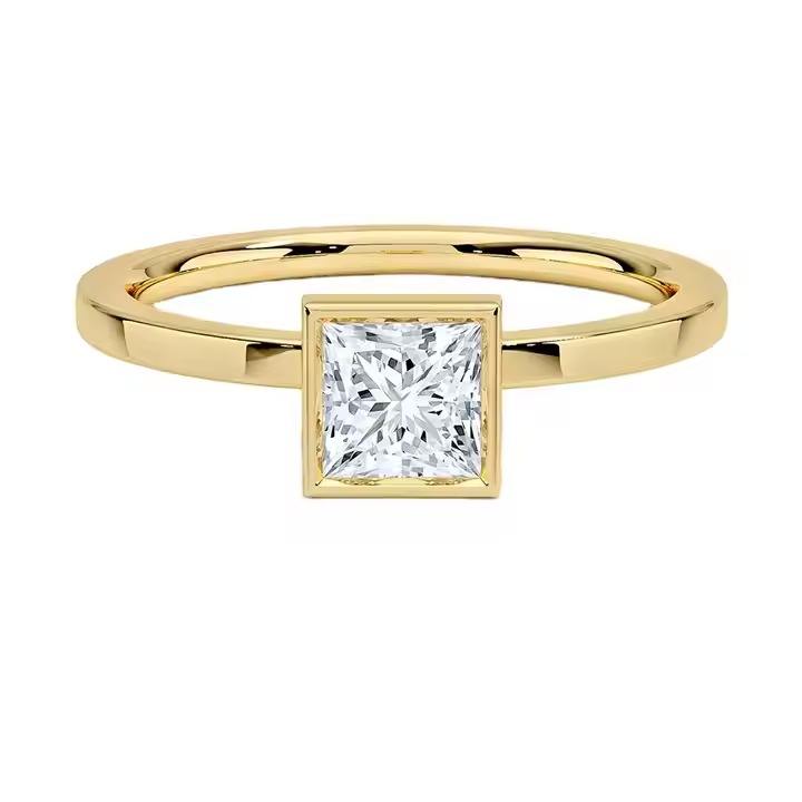 Bague de fiançailles solitaire classique en argent sterling 925 pour femme diamant Moissanite taille princesse avec incrustation de réglage