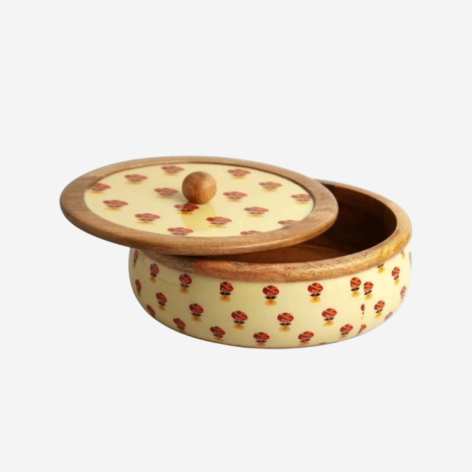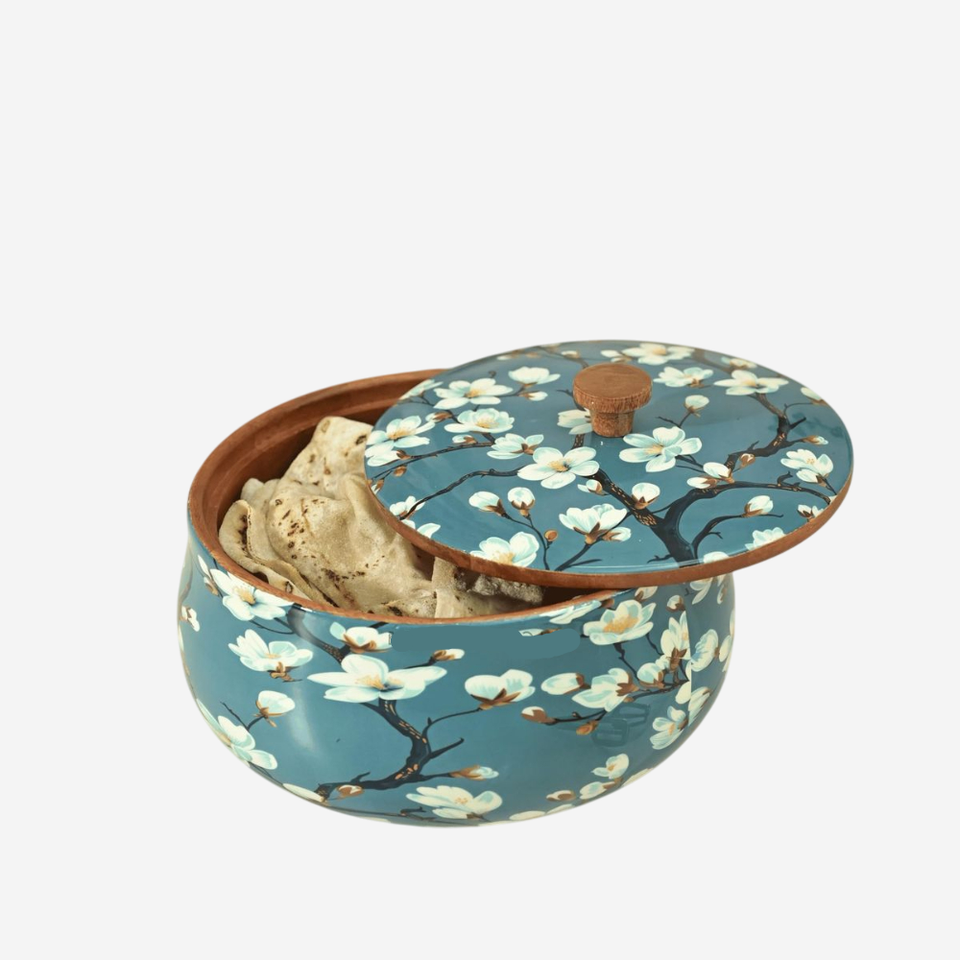 Boîte à roti en bois d'acacia classique avec couvercle en acier inoxydable finition dorée garde les chapatis au chaud pour la vaisselle de décoration de la maison