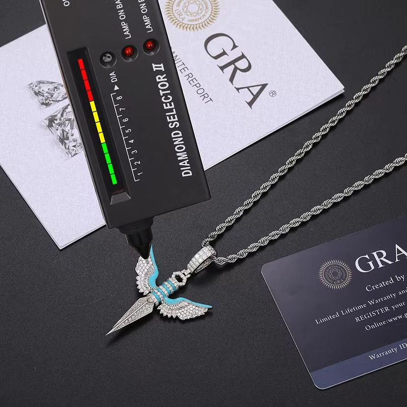 Classique Angel Wings Glow Style Pendentif S925 en argent Sterling pour hommes et femmes Chaîne cubaine avec pendentif en diamant Moissanite