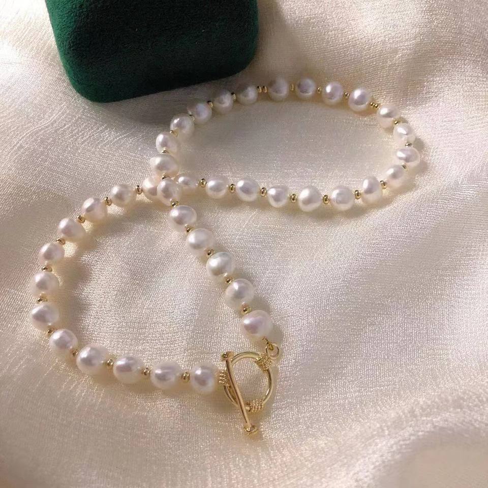 Classic Baroque OT Buckle Elegant Freshwater Pearl Necklace Jewelry Set Fashionable and Noble Mother's Day Gift