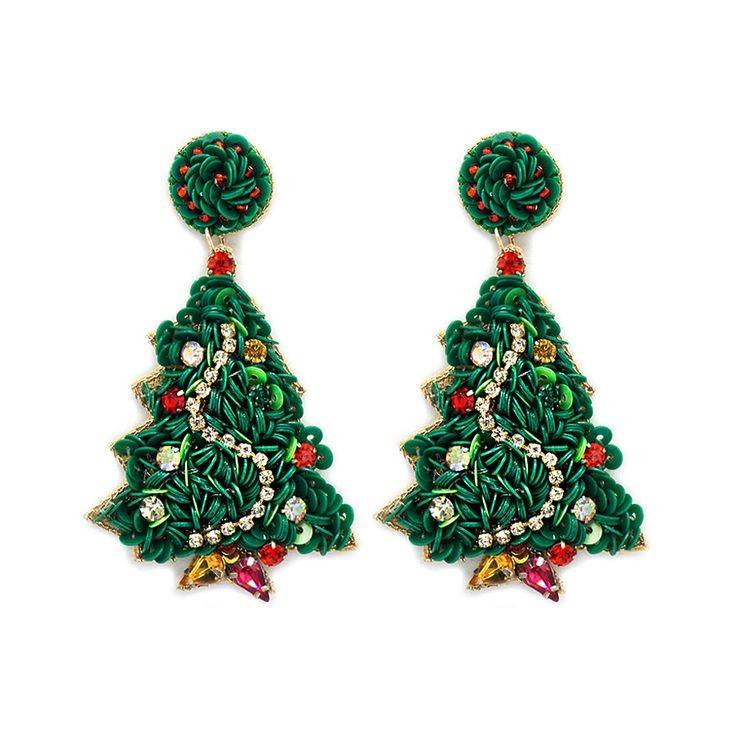 Boucles d'oreilles Huggie de sapin de Noël perlées classiques avec perles diamants étoile Topper pour les fêtes de mariage ou les cadeaux Style religieux