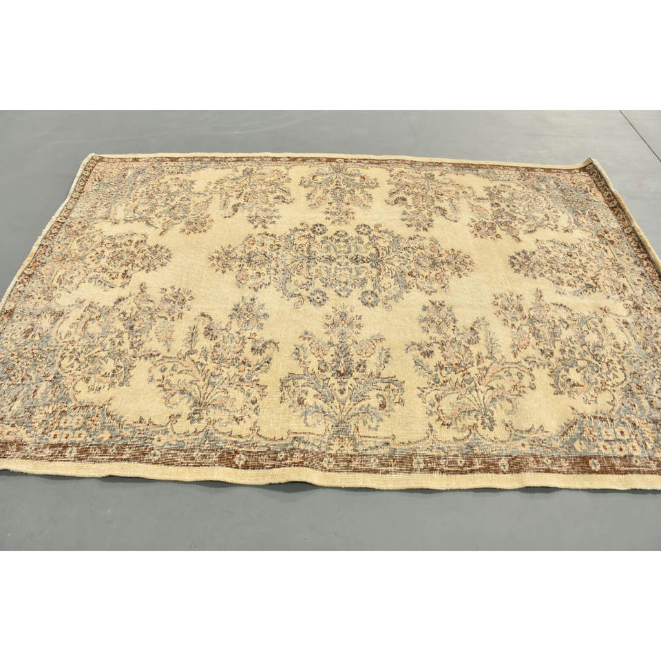Tapis en laine bleu Beige classique 5.7x8.3 pieds Design Patchwork turc fait à la main pour salon chambre Rectangle couloir en peluche Latex