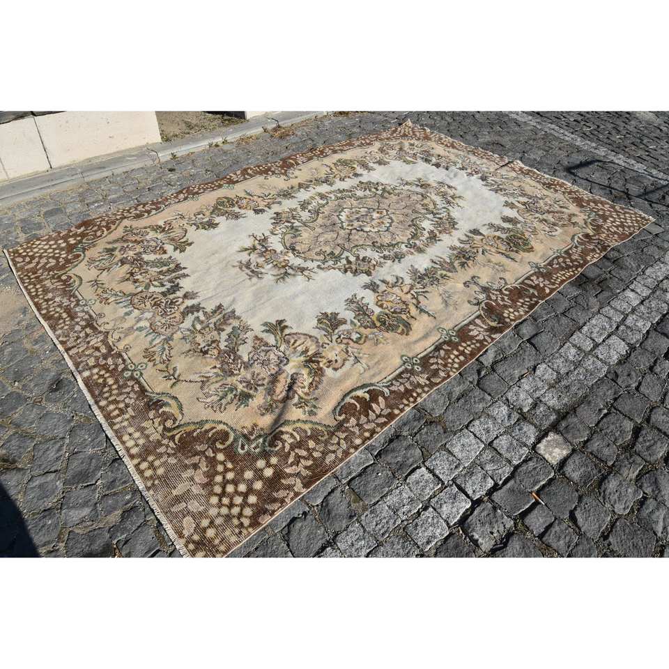 Classique Beige Marron Patchwork Turc Floral Laine Tapis 6.5X9.5 pieds pour Entrée Salon Maison Rectangulaire Couloir Conception Latex