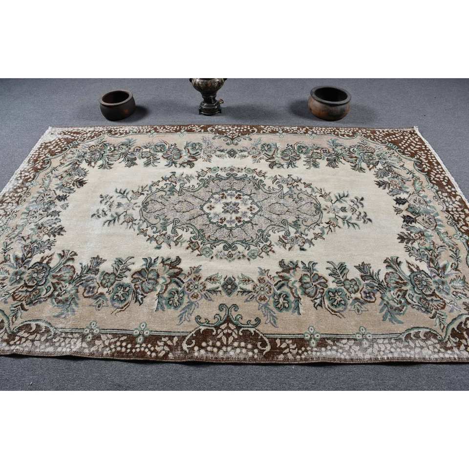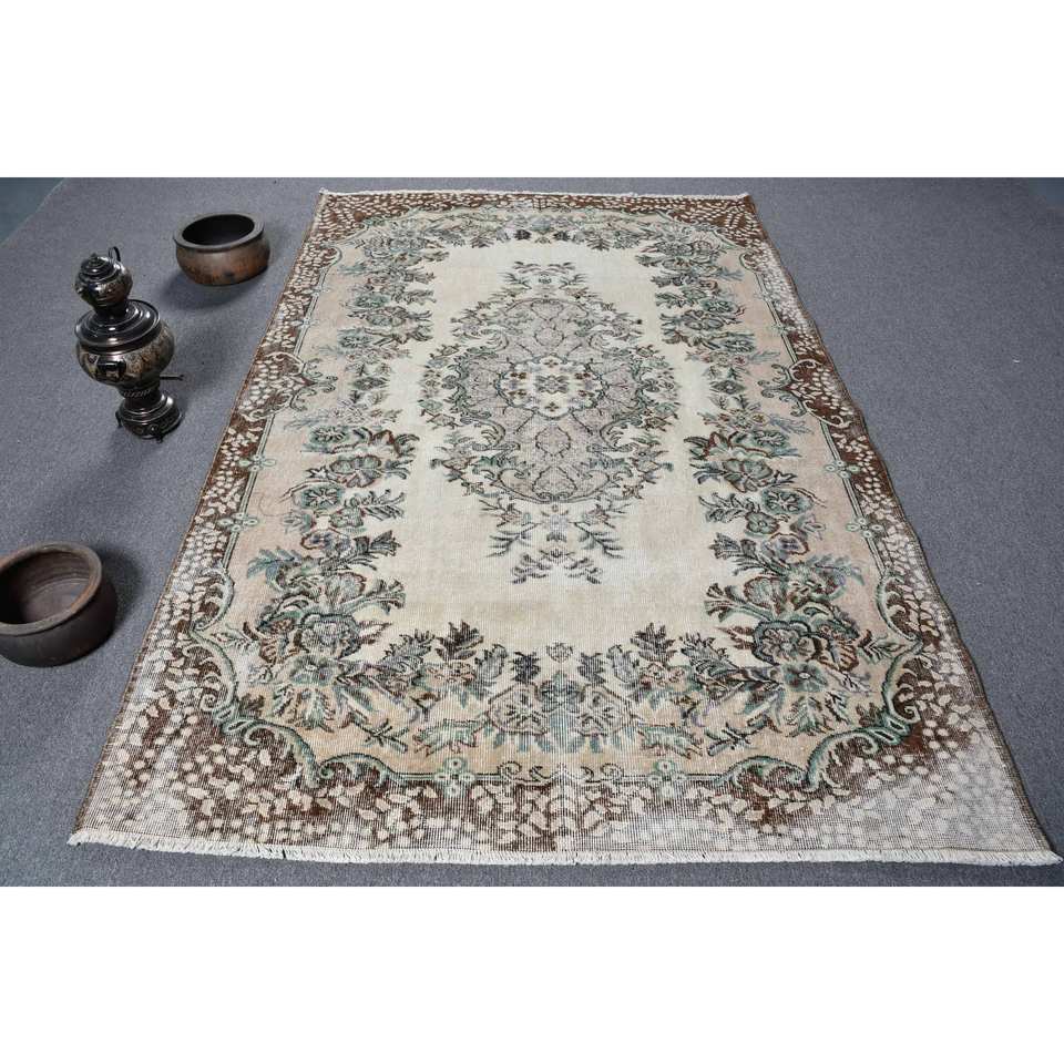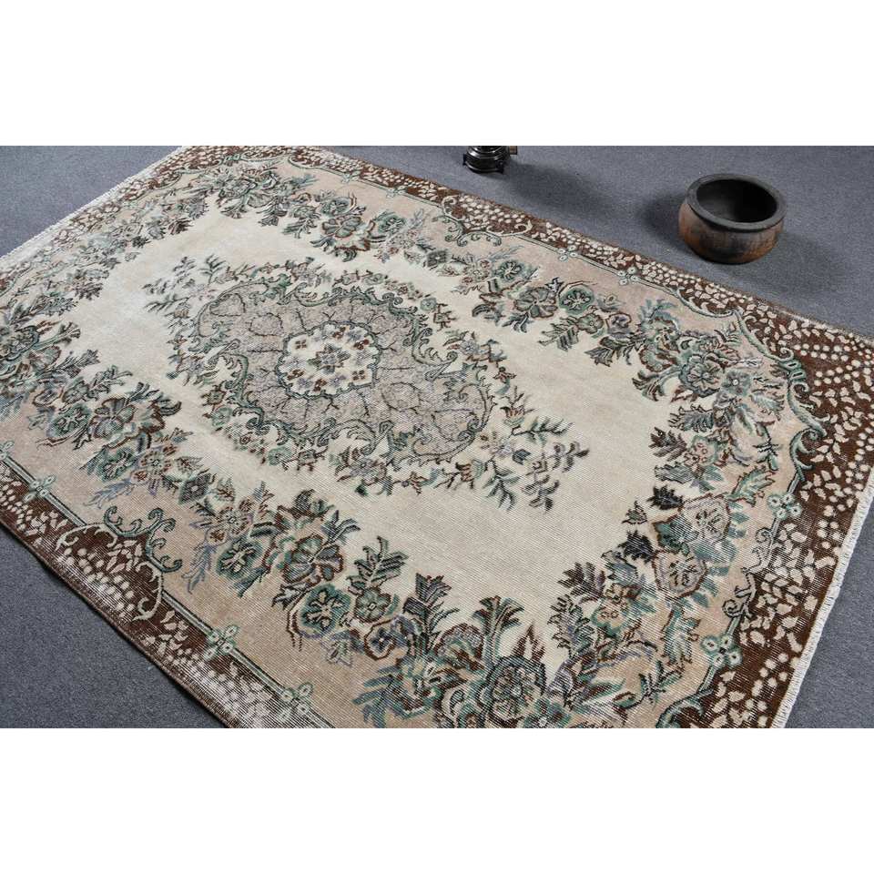 Tapis turc Vintage marron beige classique 5.3 X 8.3ft laine faite à la main avec support en Latex Patchwork motif tapis de chevet rectangulaires