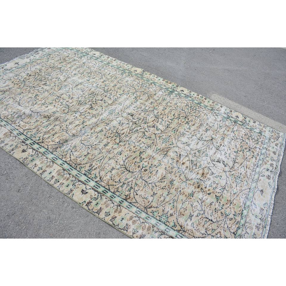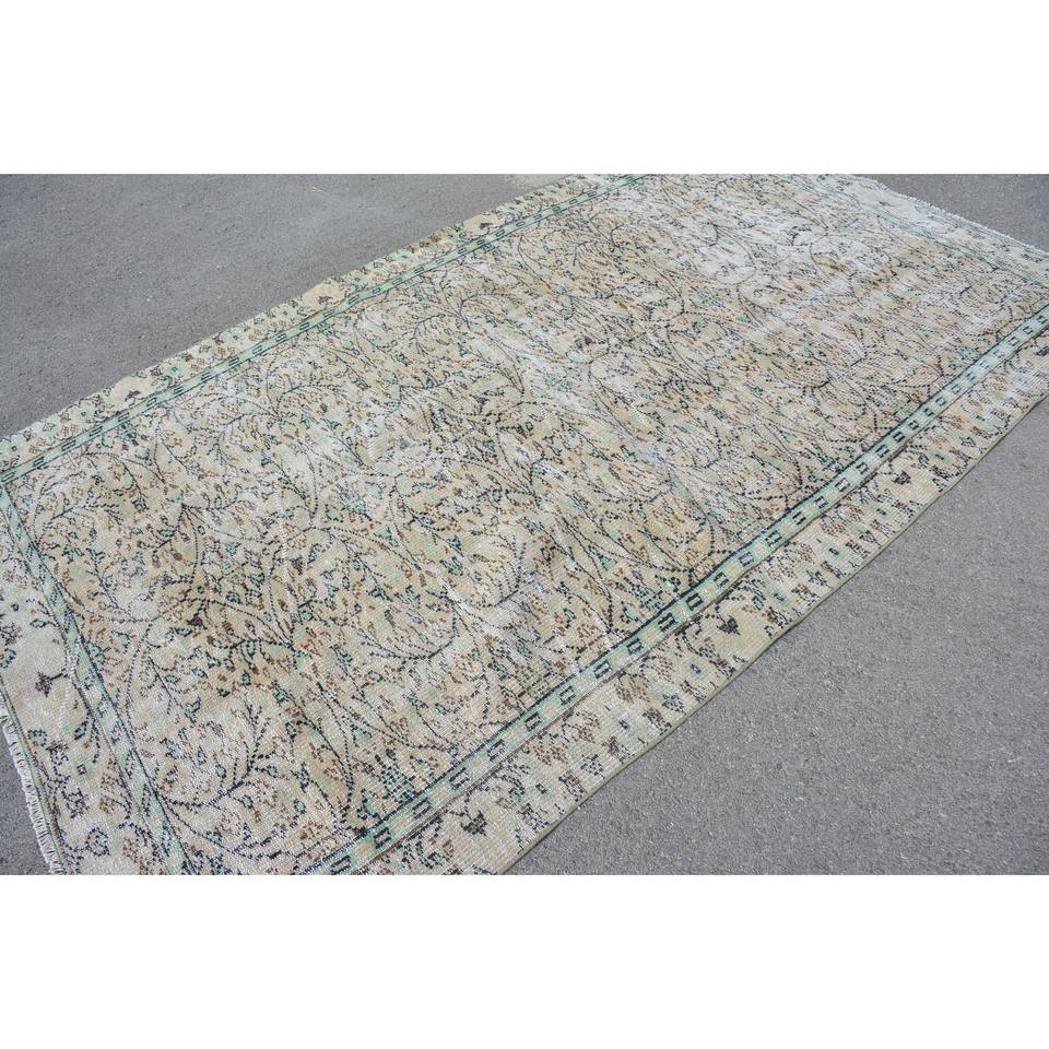 Tapis turc vintage vert beige classique 5.5x9.4 pieds laine patchwork grande surface avec support en latex pour couloir ou chambre à coucher