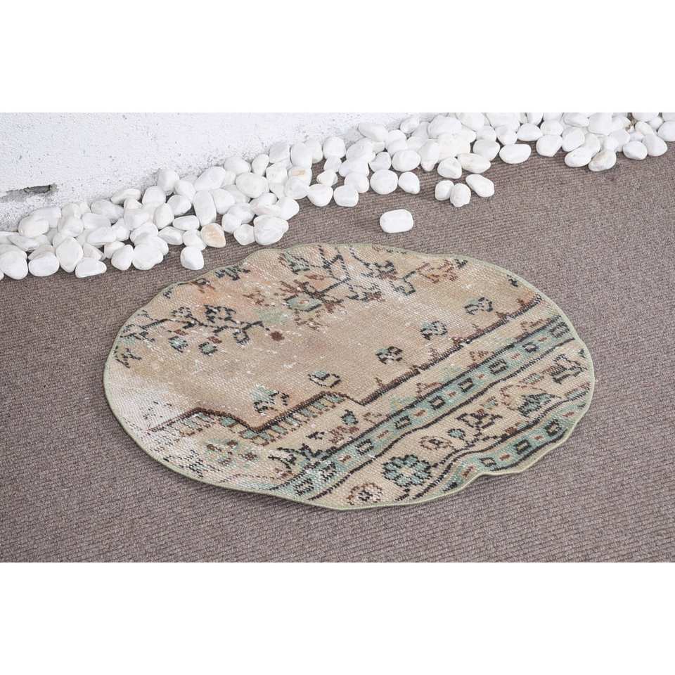 Tapis Patchwork Classique en Laine Vert Beige 2.3X2.3 pieds Rectangulaire Aubusson Design pour Salon ou Chambre à coucher avec Support en Latex