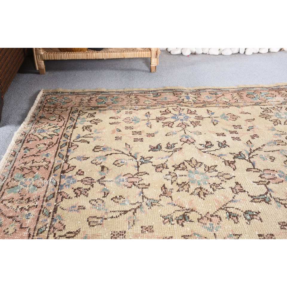 Tapis classique en laine beige rose motif floral vintage fait à la main 3'8 "x 6'4" nouvelle peluche hauteur rectangulaire couloir Design Latex