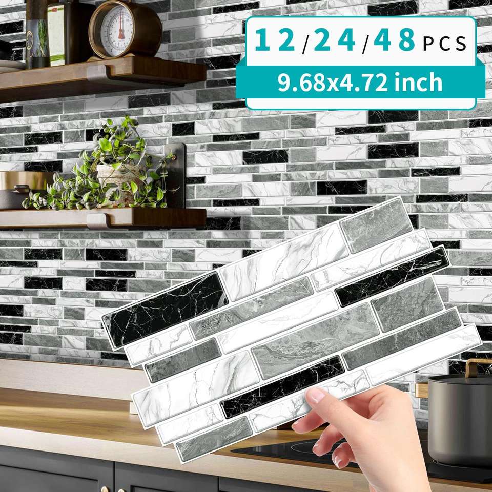 Papier peint auto-adhésif en PVC à motif de marbre noir blanc gris classique pour usage en cuisine
