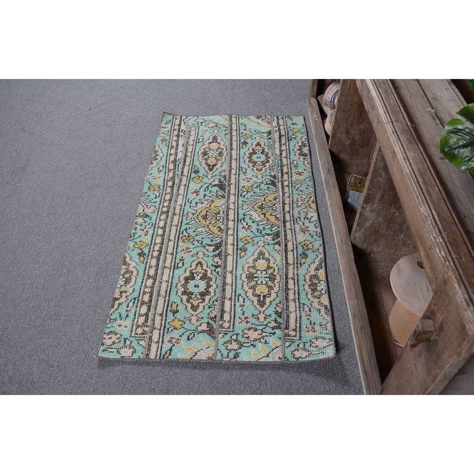 Classique Bleu Beige Vintage Tapis Turc 2.4x4.6ft Laine Patchwork Salon Tapis avec Support en Latex pour Adolescents