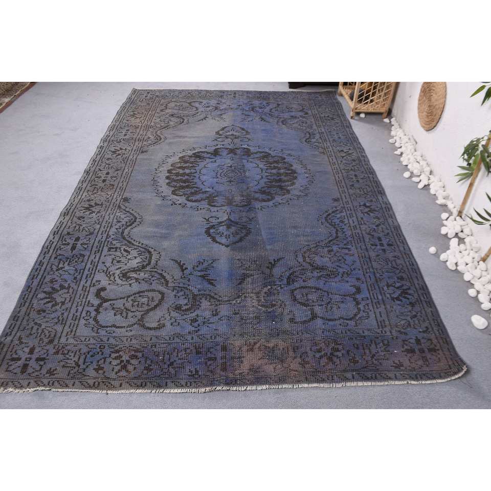 Tapis en laine fait main bleu classique 6x9ft Patchwork Design motif de Puzzle abstrait rectangulaire pour salon chambre support en Latex