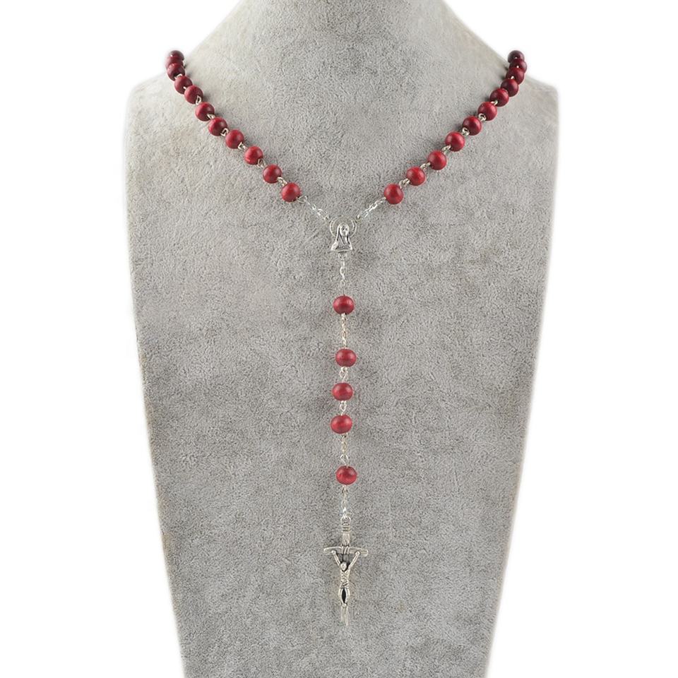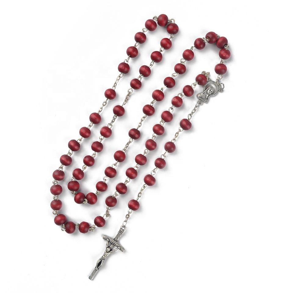 Classic Catholic Perfume Wooden St Mary Center Cheap Rosary Religious Rose Scented Prayer Rosaries Necklace with Papal Cross