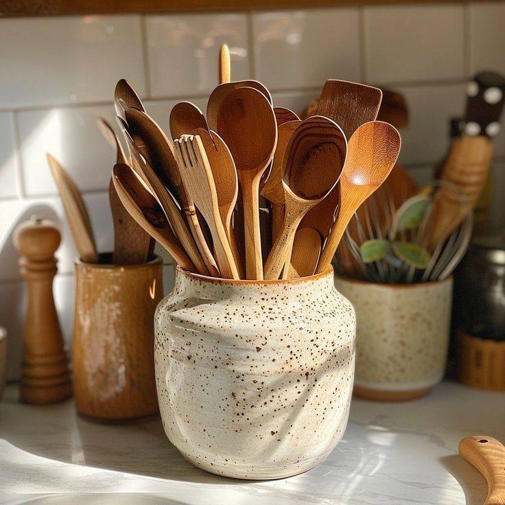 Porte-ustensiles en céramique classique, organisateur de comptoir de cuisine, pot en céramique émaillé durable pour cuillères, spatules, rangement d'outils de cuisine