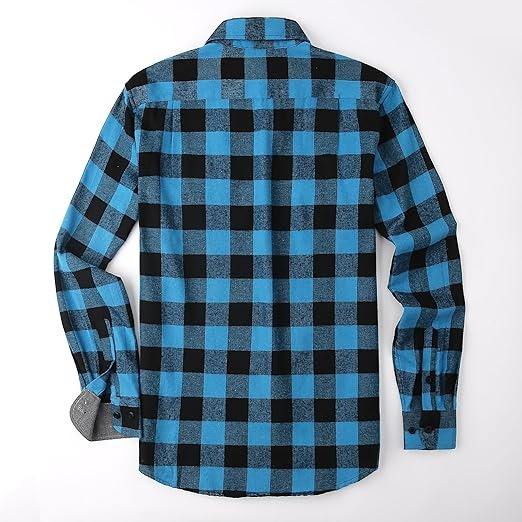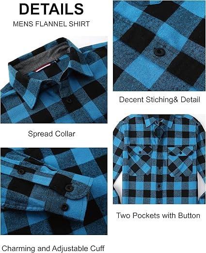 Chemise boutonnée à carreaux classique pour homme, en coton doux et chaud, chemise à carreaux décontractée avec deux poches, col ouvert, poignets ajustables