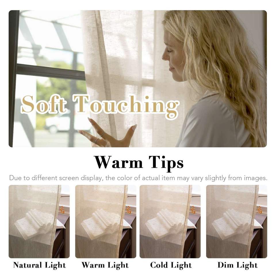 Collection Classique Rideaux à Œillets Semi-Transparents en Lin Doux et Contemporain pour l'Intimité, 2 Panneaux 52''x 63'' pour Chambre à Coucher
