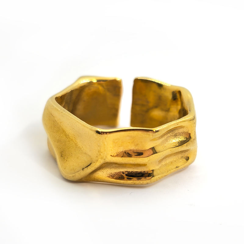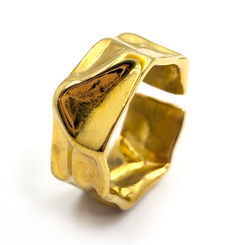 Classique Concave Convexe Large En Acier Inoxydable Ouvert Réglable Bandes De Mariage ou Anneaux À La Mode 18K Plaqué Or Femmes Hommes Fiançailles