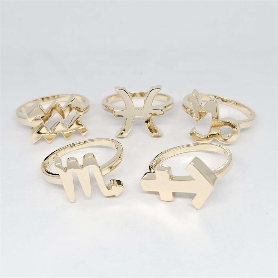 Bagues classiques en or véritable - Or jaune 18K 9K - Bagues signes du zodiaque pour mariages, anniversaires, fiançailles - Prix d'usine