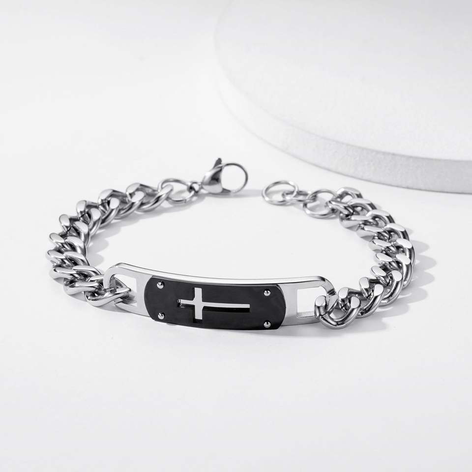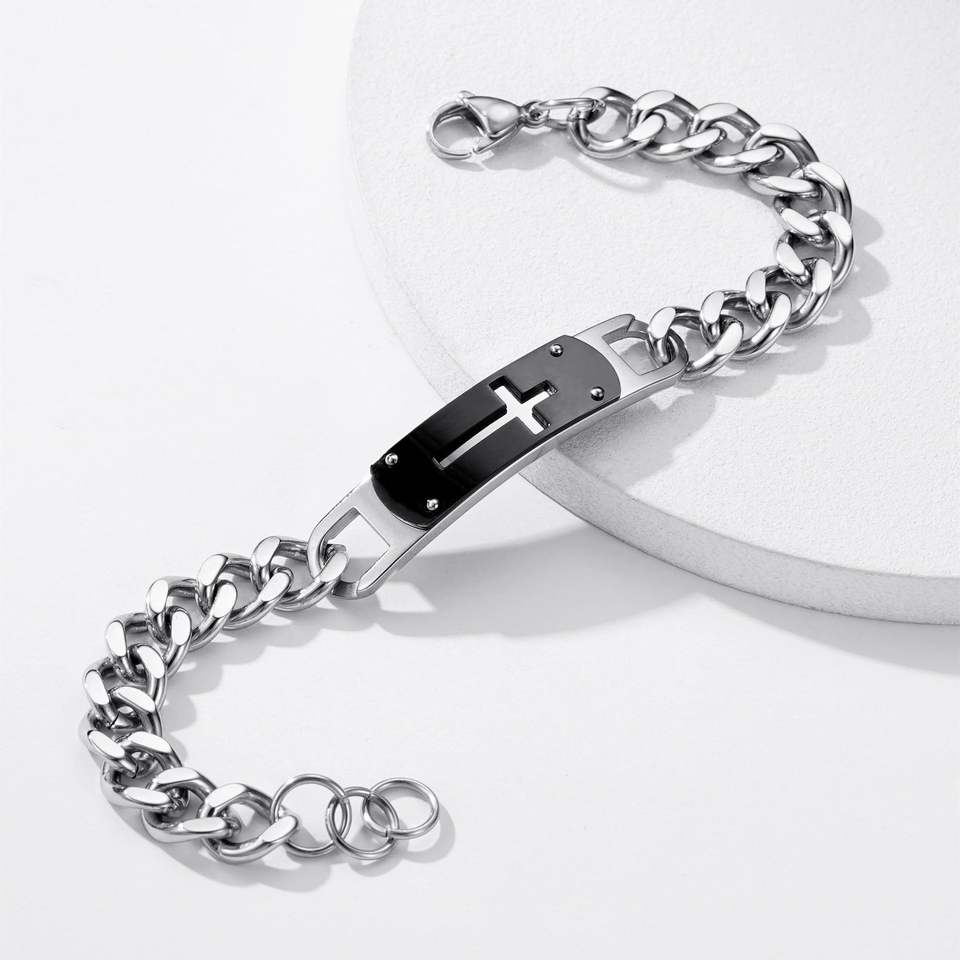 Bracelet croix punk classique en acier inoxydable, réglable, bijoux chrétiens pour homme, plaqué noir, tendance, anniversaire