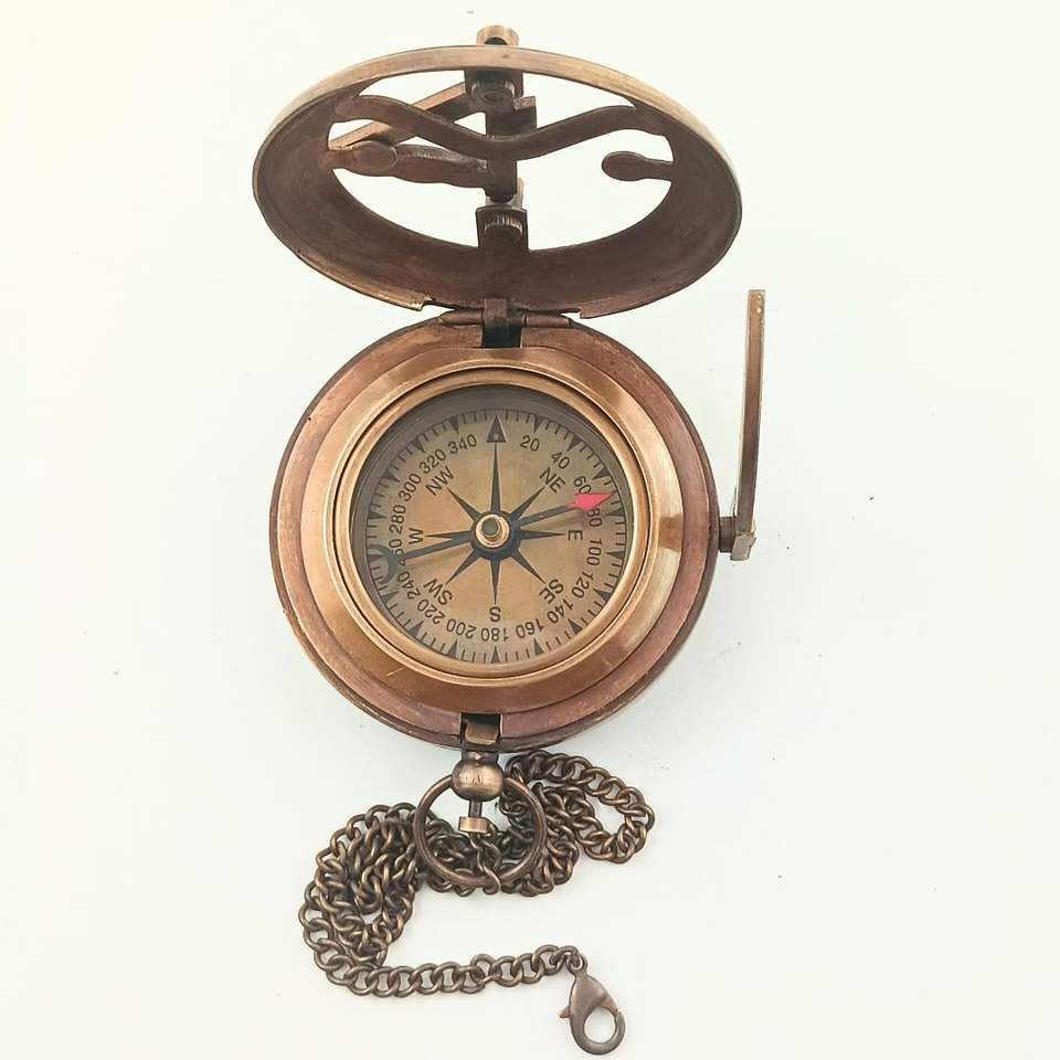 Porte-clés boussole classique en cuivre avec motif circulaire, léger, pliable, écologique, cadeau nautique pour lui - Anniversaire de navigation