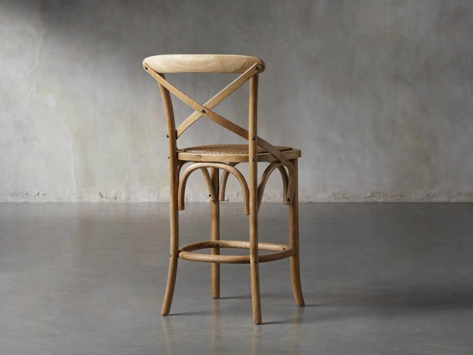 Tabouret de bar classique en bois à dossier croisé avec siège en rotin tressé à la main, chaise de bar pour restaurant, comptoir de café et projets hôteliers