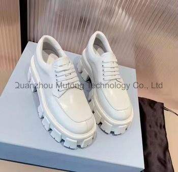 Baskets montantes classiques personnalisées avec logo, en cuir véritable, pour femme, style décontracté, à semelle épaisse et talon compensé