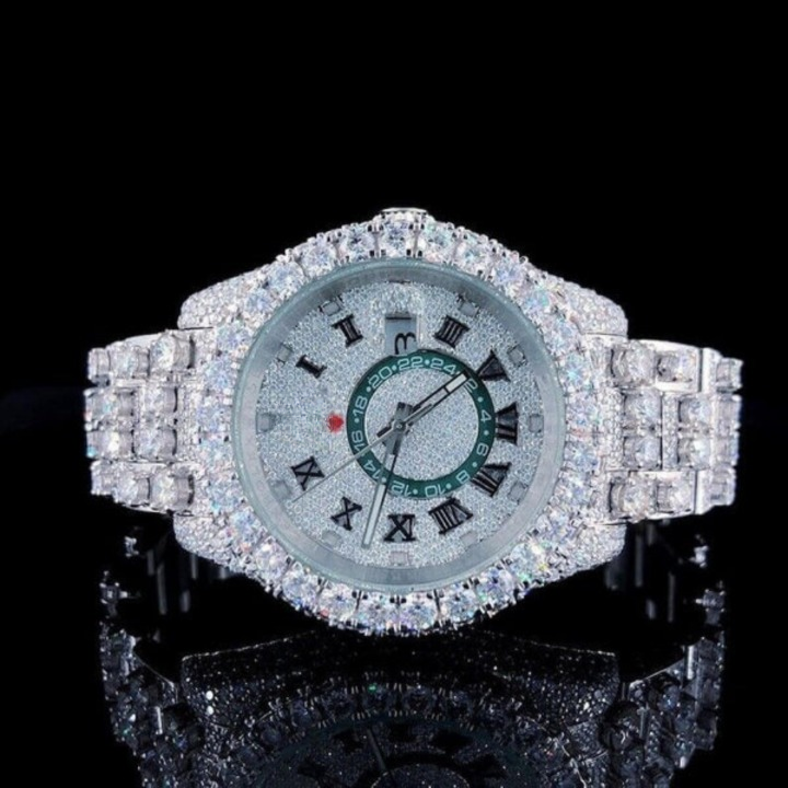 Montre en moissanite glacée VVS qui passe le testeur de diamant.