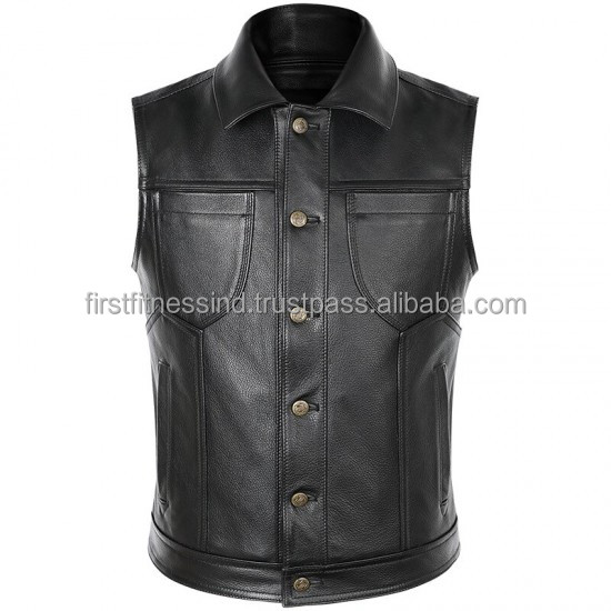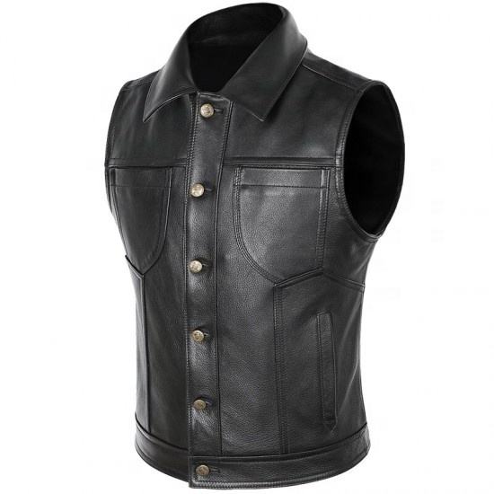 Gilet en cuir personnalisé coupe classique pour hommes hiver Moto Biker gilet avec bouton décoration noir 3D motif Style
