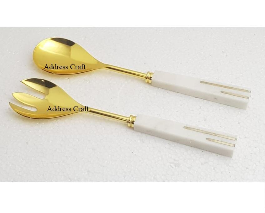 Serveur à salade en acier inoxydable 18/8 design fantaisie avec poignée en marbre ensemble d'outils à salade ustensiles de cuisine outils de service essoreuse à salade