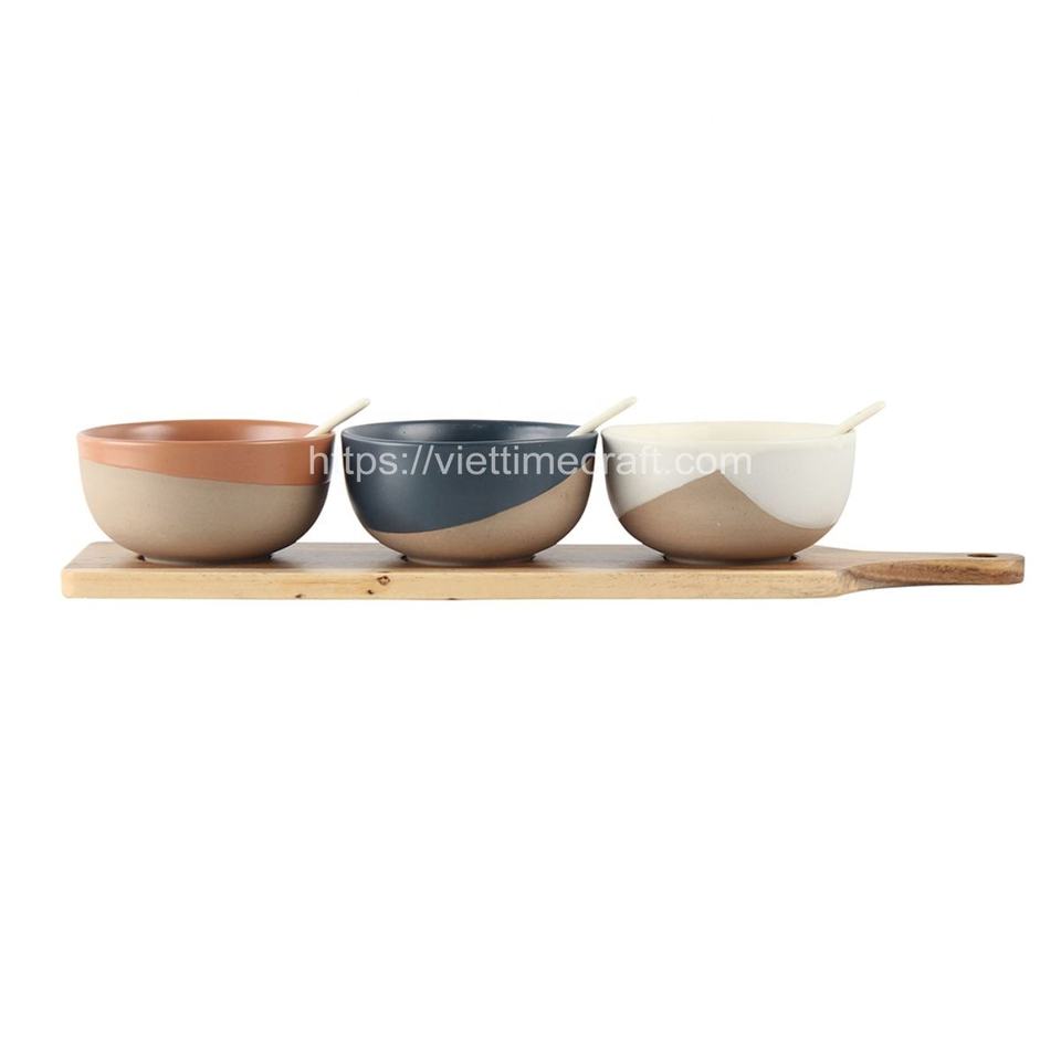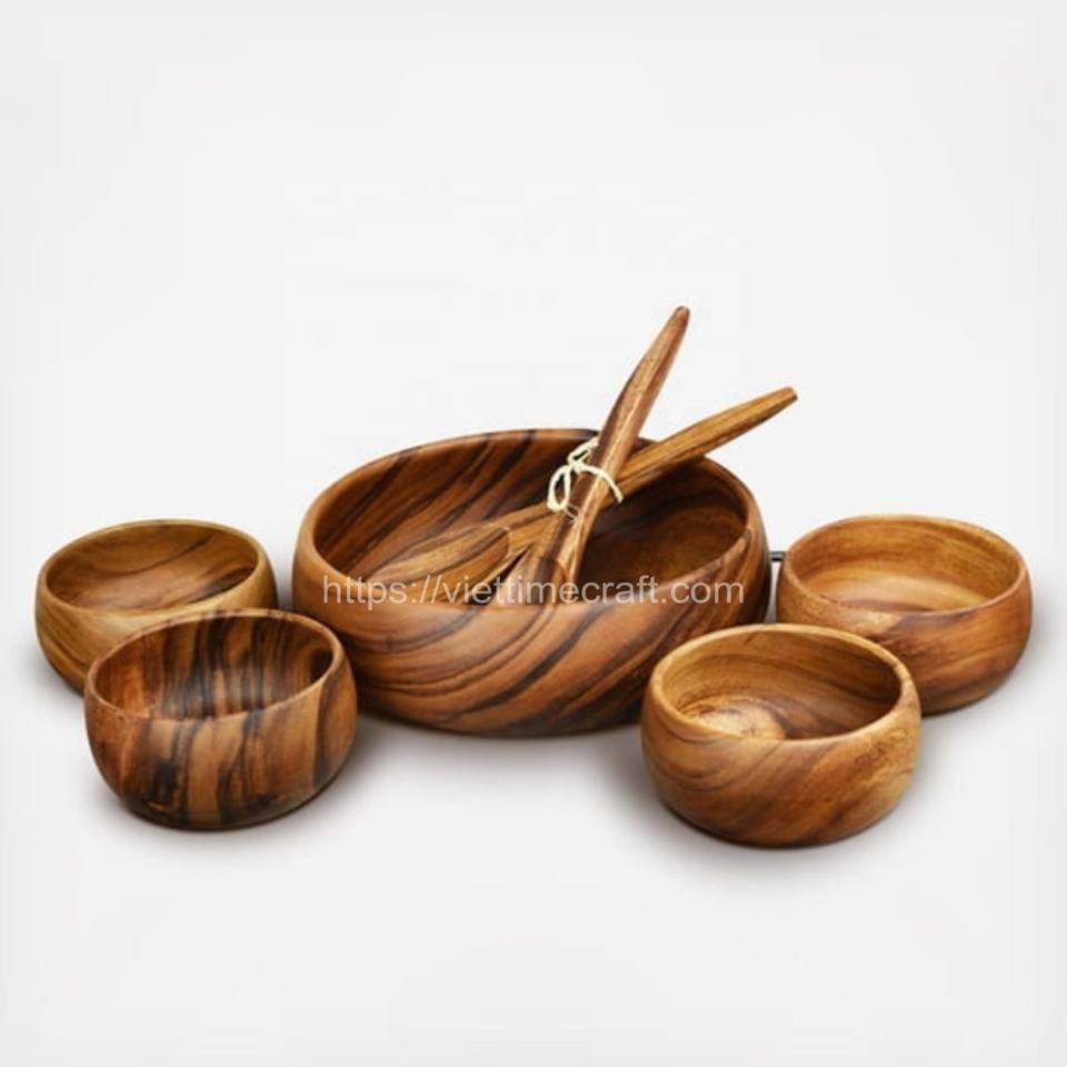Design classique Combo 6 salade/bol de service en bois d'acacia avec mains de salade, ustensiles en gros Vietnam