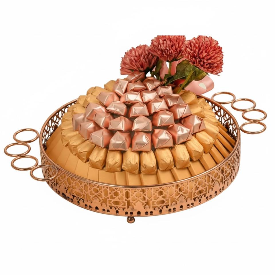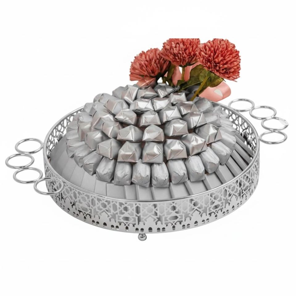 Plateau à chocolat décoratif au design classique avec poignée florale, plateau à chocolat en métal argenté de haute qualité pour occasions spéciales