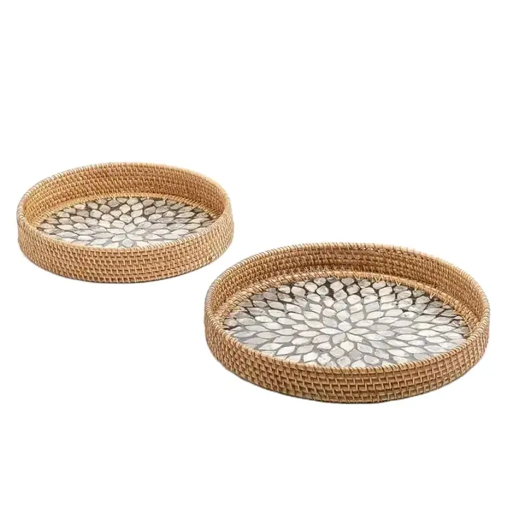 Lot de 3 plateaux de service décoratifs pour table de restaurant pour la maison et l'hôtel Vaisselle au design classique Plateau de service MOP