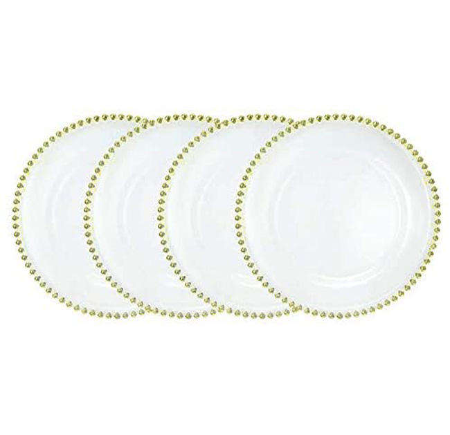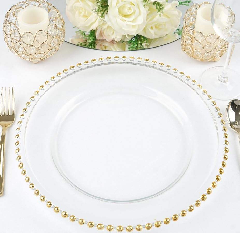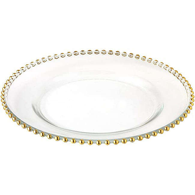 Assiettes de chargeur en verre transparent or argent design classique avec motif rose pour les événements et les fêtes de restaurants