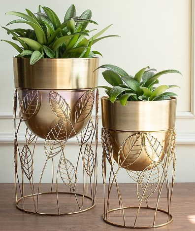 Jardinière de sol faite à la main au design classique support fini or jardinière de sol en métal avec supports de créateurs jardinières