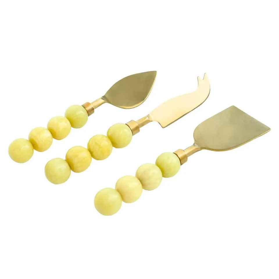Couteau à fromage au design classique, de haute qualité, écologique, en acier inoxydable plaqué or, avec manche en résine époxy transparente fantaisie