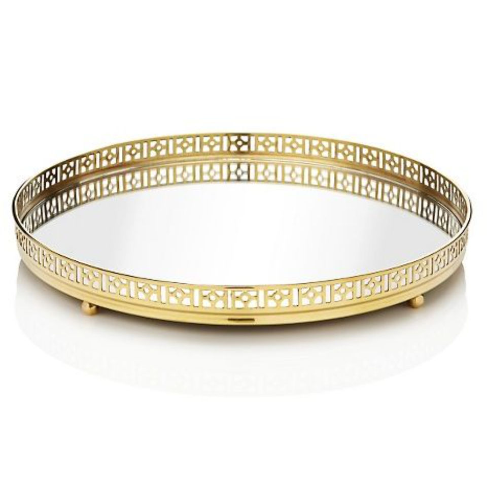Plateau miroir ovale doré au design classique pour la décoration de la maison et le rangement de la cuisine, idéal pour l'affichage de parfums ou de bibelots – En promotion