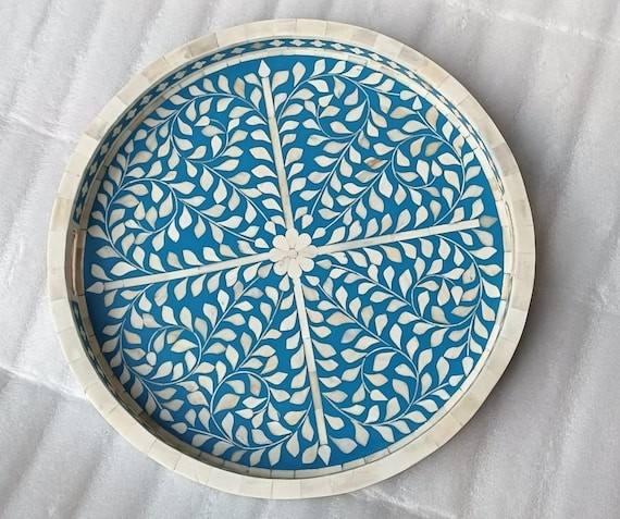 Design classique hôtel vaisselle os incrustation luxe plateau de service pour décor de Table os incrustation plateau rond plats et plateau de service pour la maison