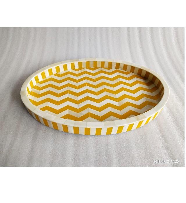 Design classique hôtel vaisselle os incrustation luxe plateau de service pour décor de Table os incrustation plateau rond plats et plateau de service pour la maison