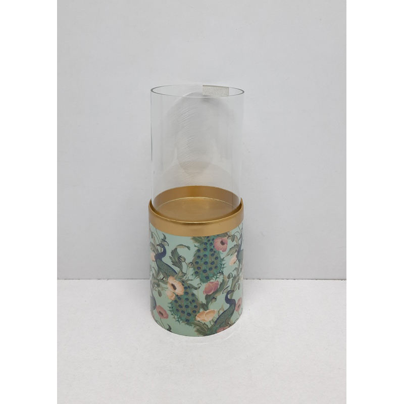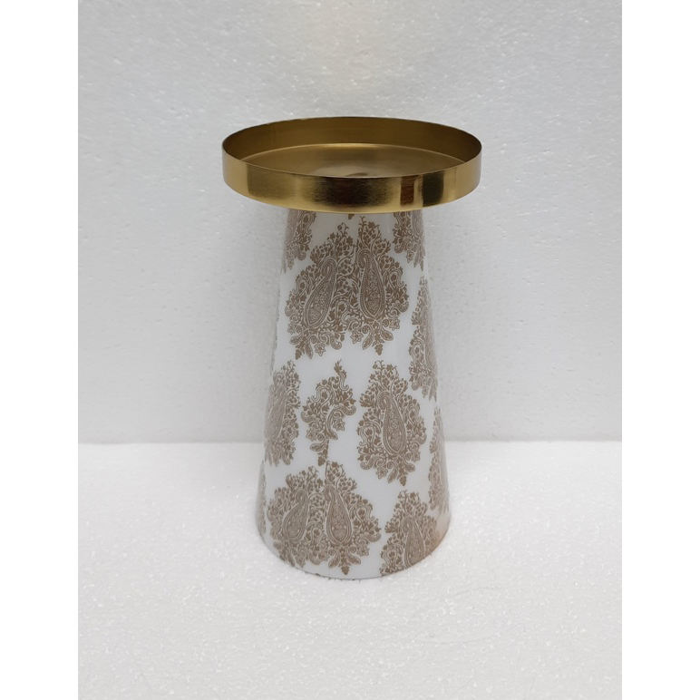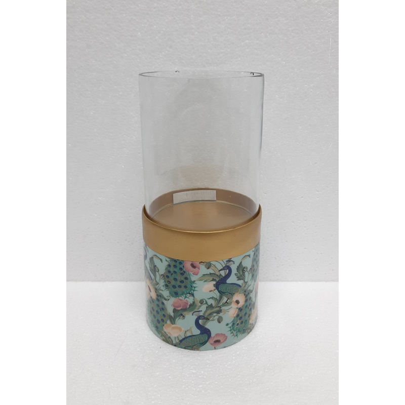 Design classique métal et verre ouragans bougeoir décalcomanie émail fini salon dessus de Table décoratif à la main personnalisé