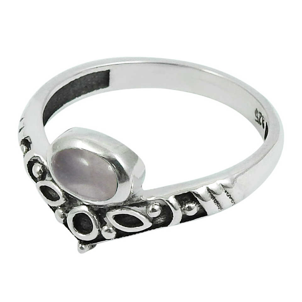Bague en quartz rose au design classique, faite à la main, minimaliste, bijou bohème, estampillée argent sterling 925