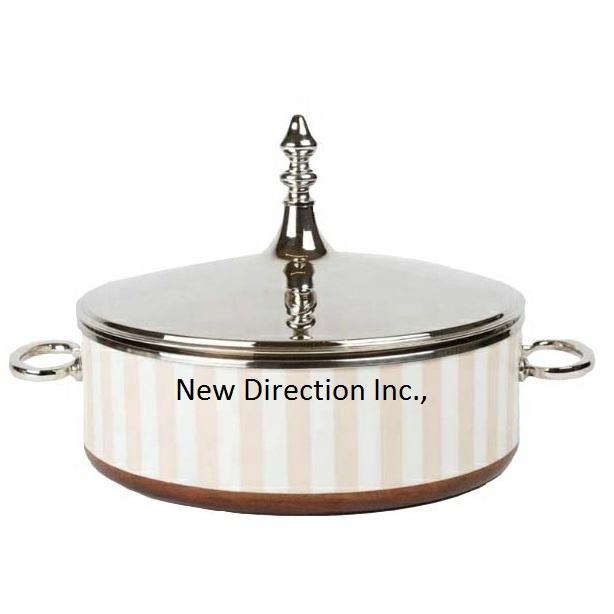 Pot chaud de serveur de casseroles en acier inoxydable de conception classique avec la marmite décorative de service de nourriture de finition d'émail avec des poignées