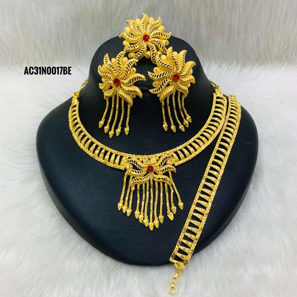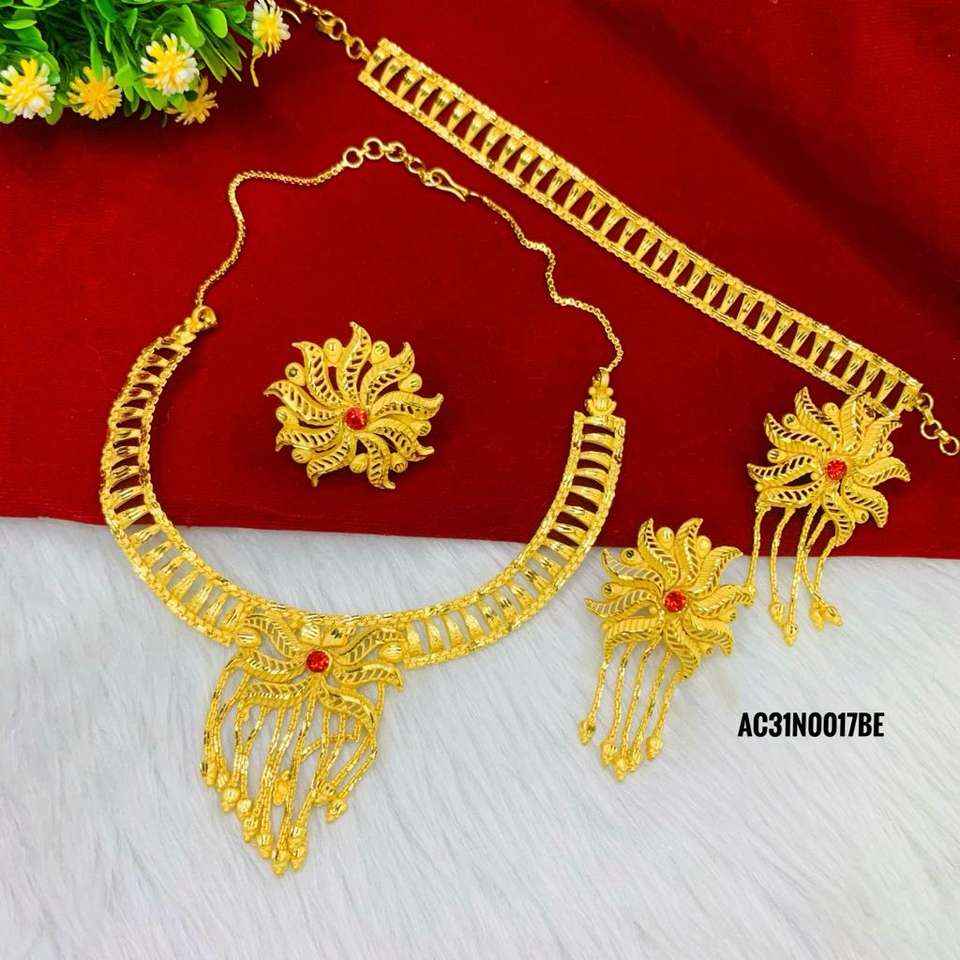 Ensemble de collier court de haute qualité avec boucles d'oreilles et bagues plaqué or 18 carats bijoux d'un gramme pour femmes