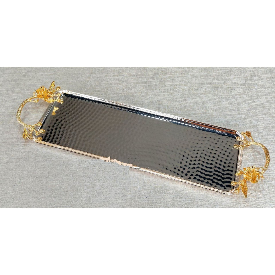 Plateau de service de nourriture de décor de table de conception classique plateau d'acier inoxydable de la meilleure qualité avec le plateau de service de biscuits de poignée florale d'or