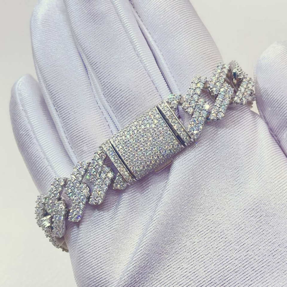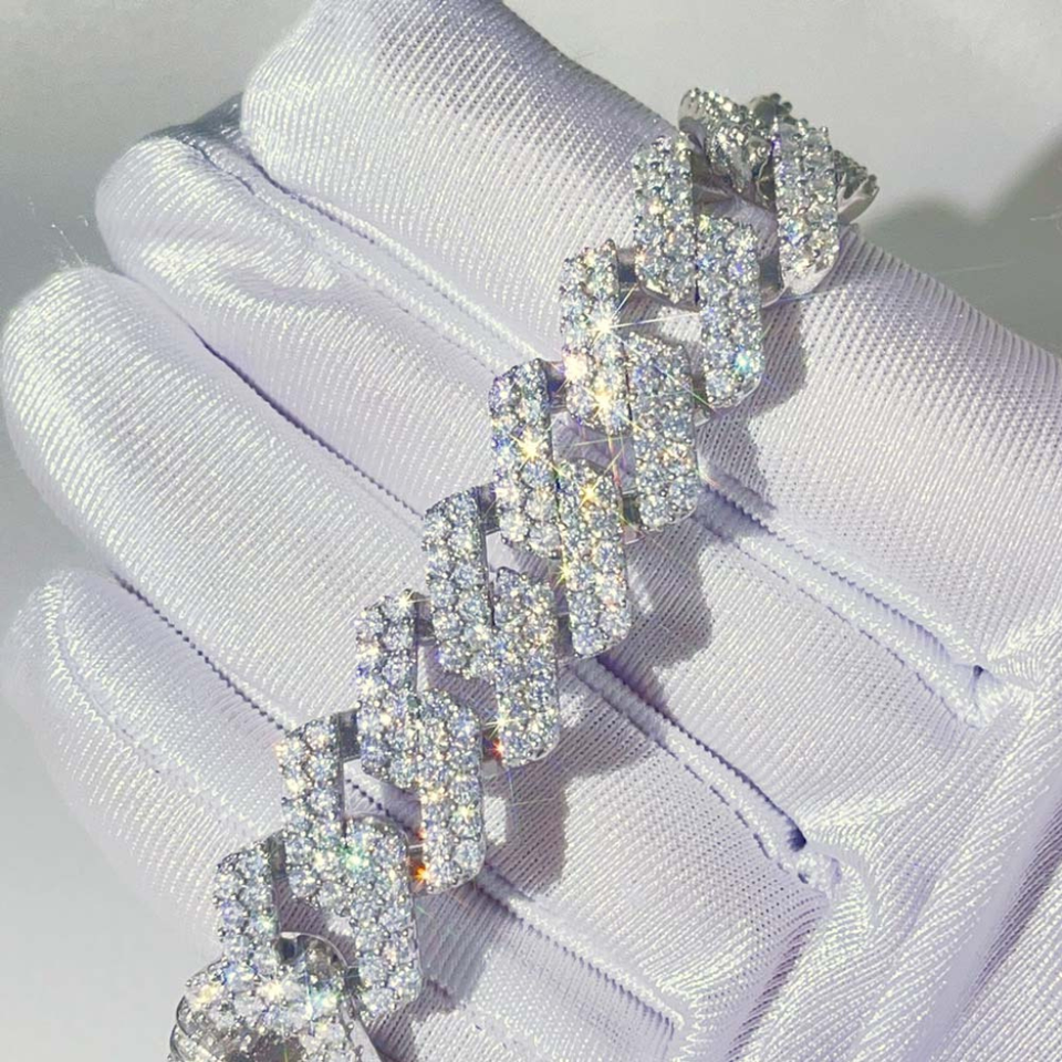 Bracelet classique en moissanite de laboratoire VVS, design élégant Miami Cuban Link, chaîne fine en argent sterling 925, bijoux en or