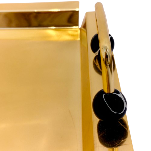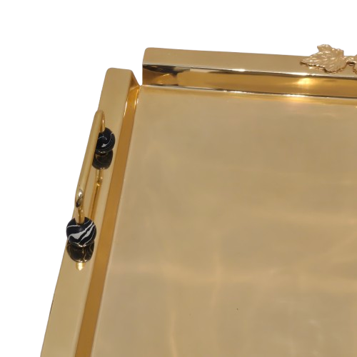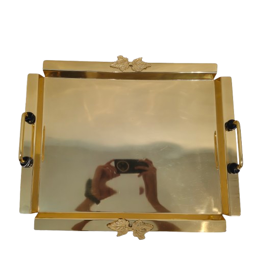 Plateau de service rectangulaire classique en laiton poli avec poignées, durable et écologique, idéal pour les fêtes et les mariages