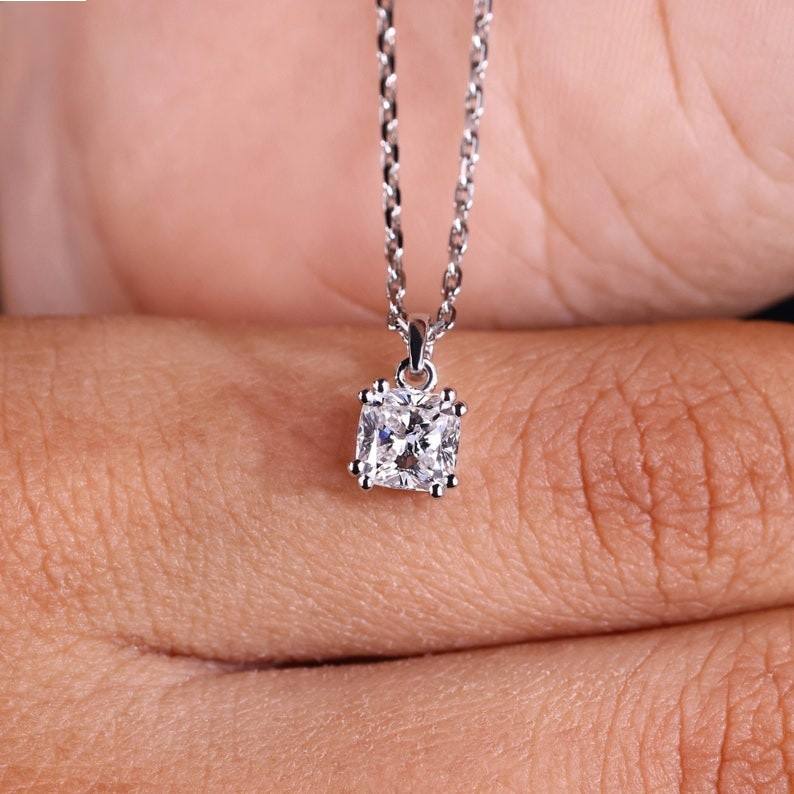Keyword:14k white gold diamond pendant necklace cushion cut diamonds